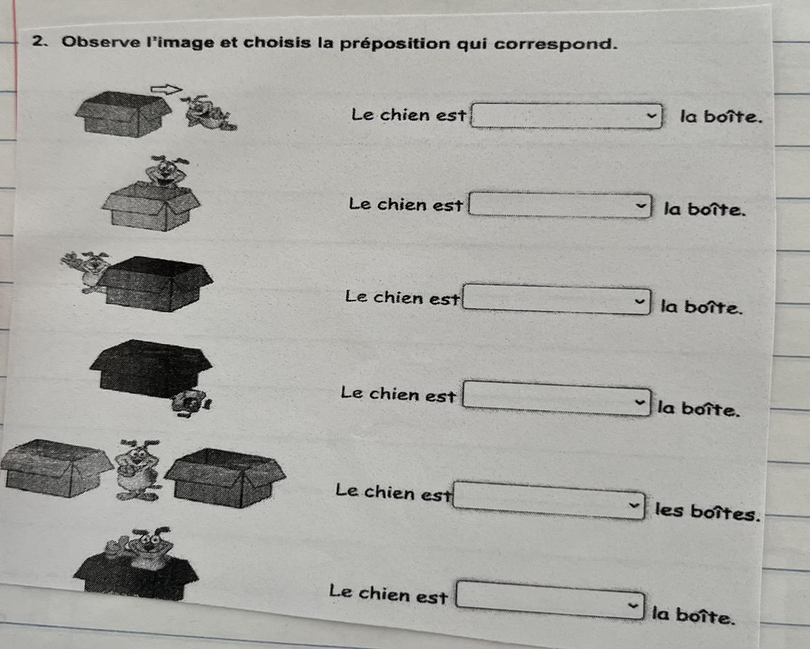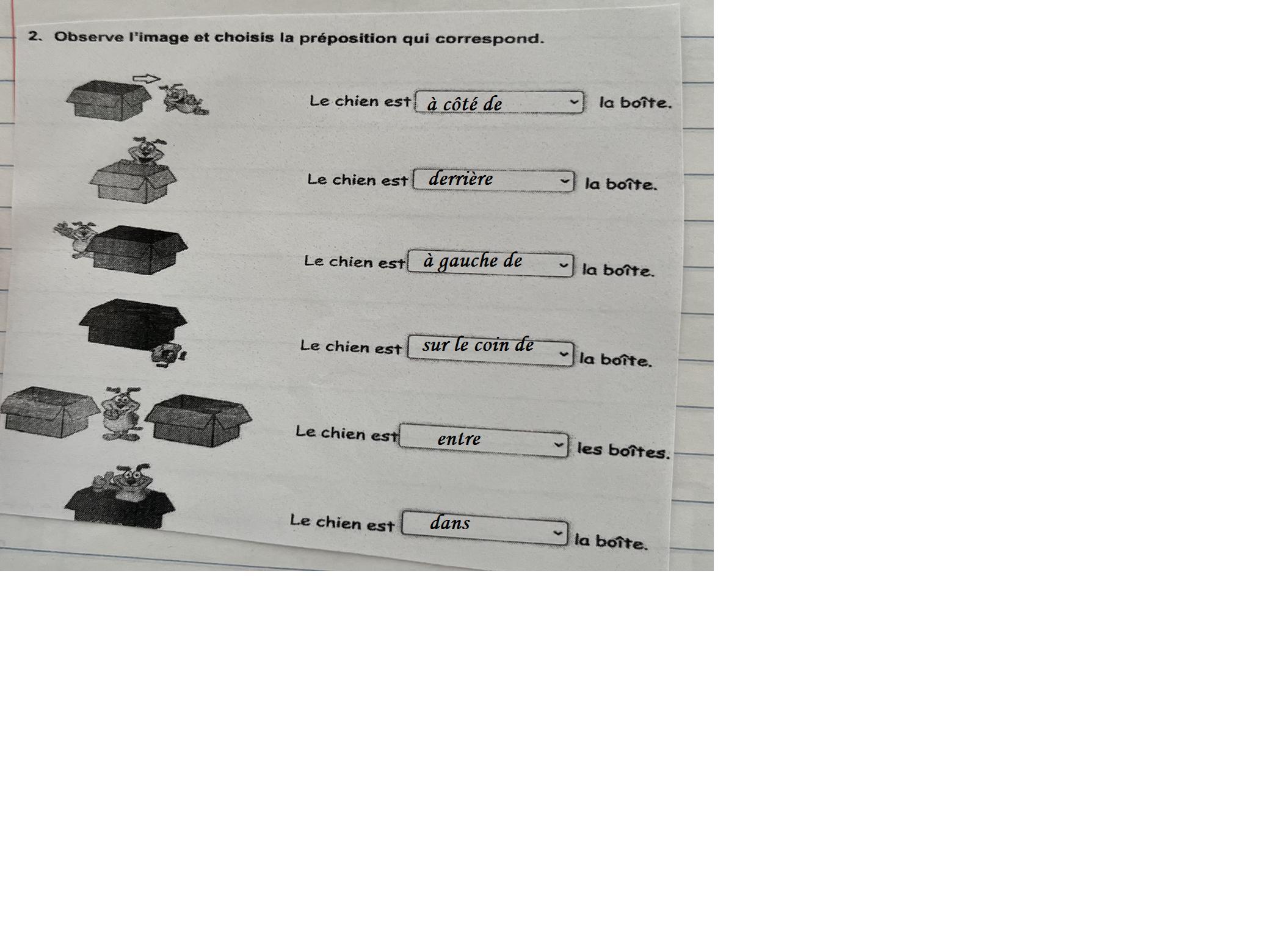 Observe l'image et choisis la préposition qui correspond.