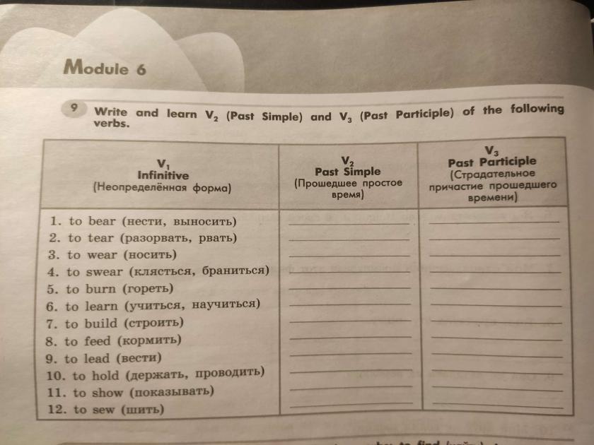 Write and learn V2 (past simple) and V3 (past participle) of the following verbs.
