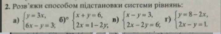 Відповідь: Спосіб підстановки у системах рівнянь з двома змінними - це вираження однієї змінної через іншу змінну або число, та підстановка її у інше рівняння системи.