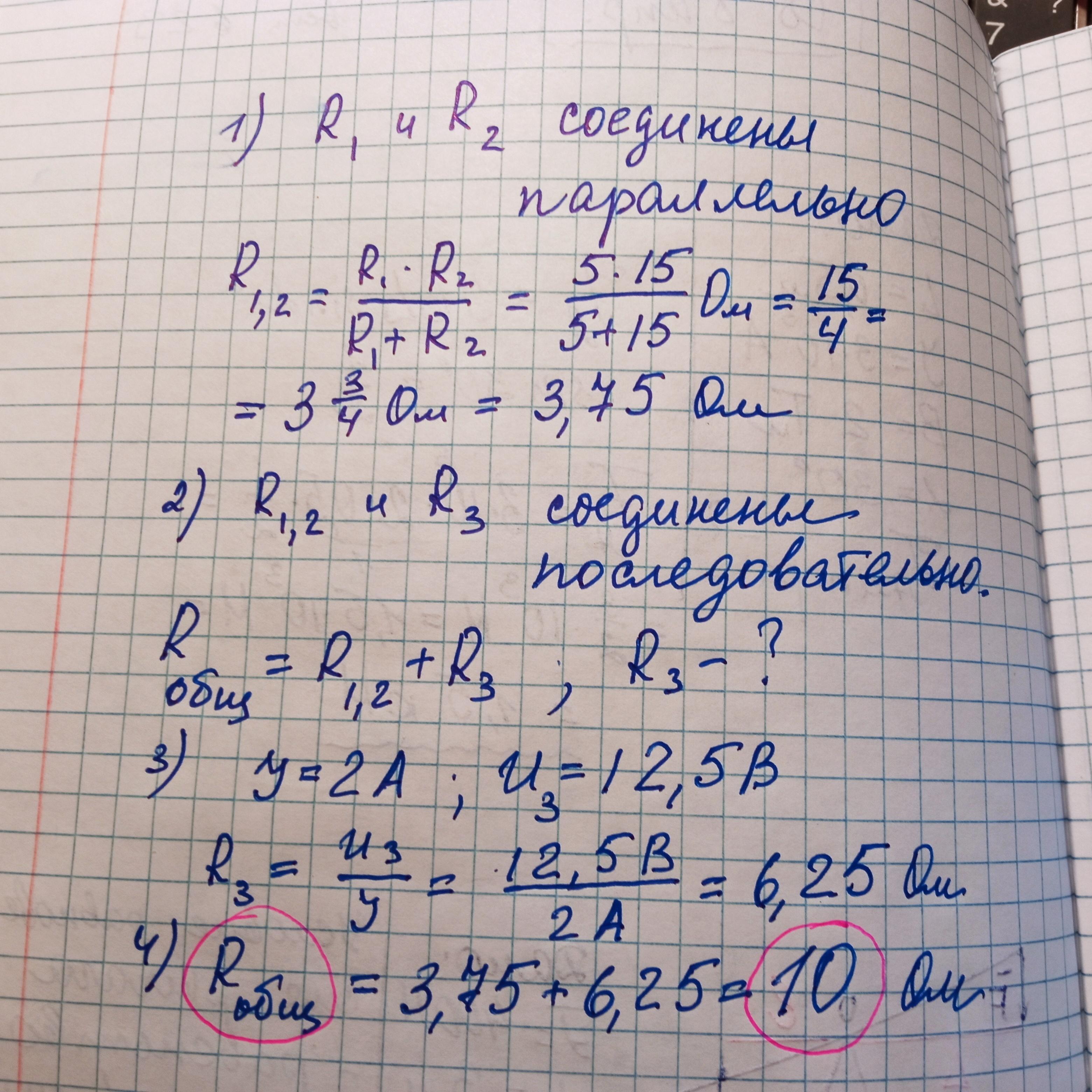 D 2 A 5 Ом 1 { 2 ] 15 Ом 3 12,5 B