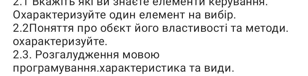2.3 В програмуванні та об'єктно-орієнтованому підході, об'єкт є конкретною інстанцією класу, яка має певні властивості та методи. Властивості об'єкта визначають його стан або характеристики, які можуть бути змінені або отримані. Методи, з іншого боку, є функціями або процедурами, які можуть бути викликані для здійснення певної дії над об'єктом або його властивостями.