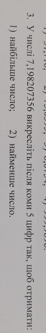 У числі 7,198207356 викресліть після коми 5 цифр так, щоб отримати: