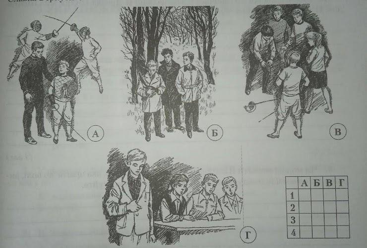Визначте за ілюстраціями послідовність подій у повісті Н.Бічуї "Шпага Славка Беркути"
