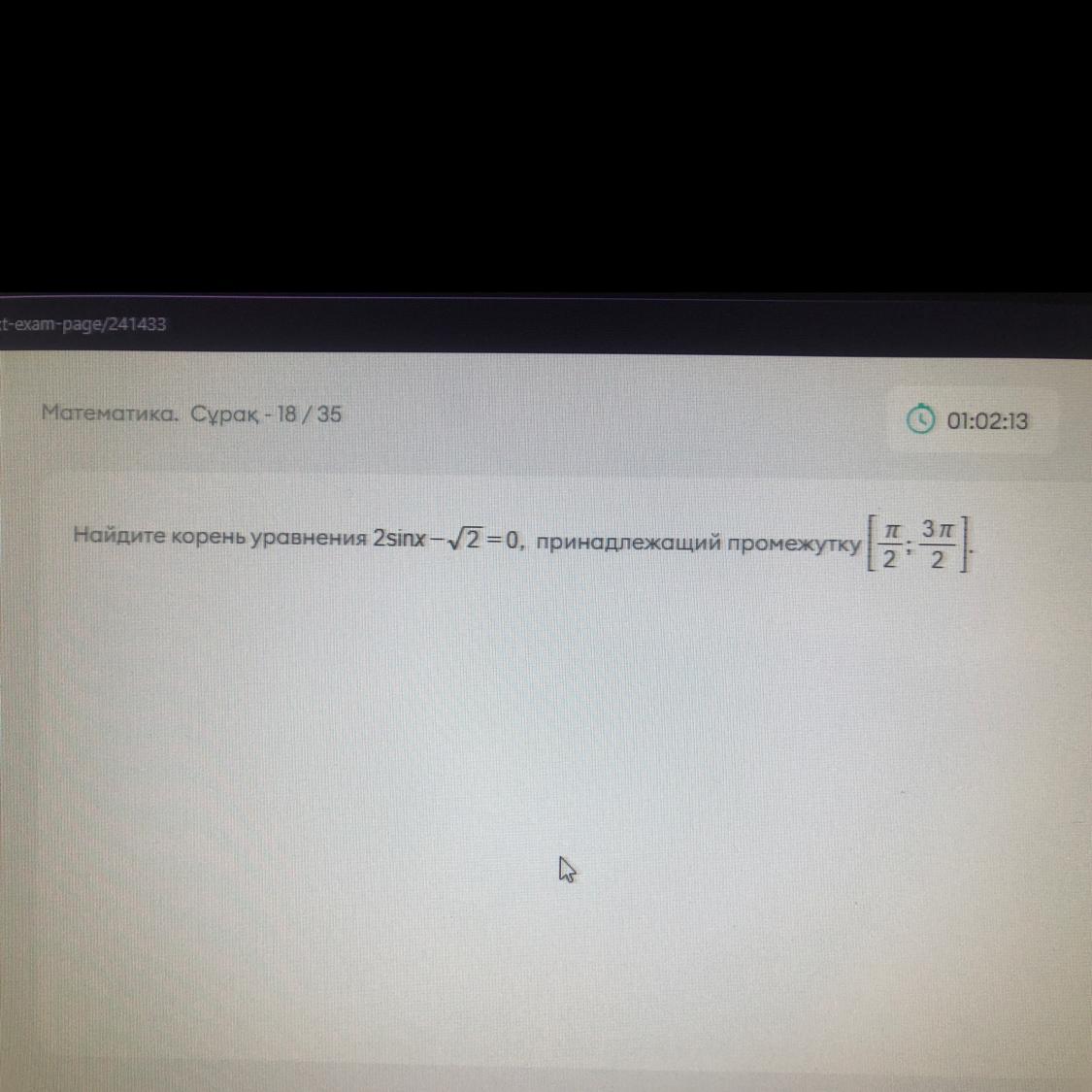 2*sin x-√2=0; sin x=arcsin(√2)/2; x=3π/4=135°