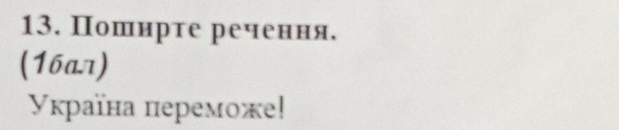 Україна (підмет) скоро (обставина) переможе (підмет) ворога (додаток)!
