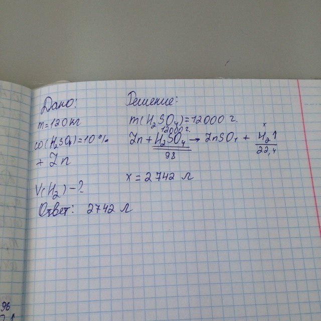 достаточное количество цинка обработали 120 кг 10% раствора серной кислоты.Определите объем выделившегося газа?