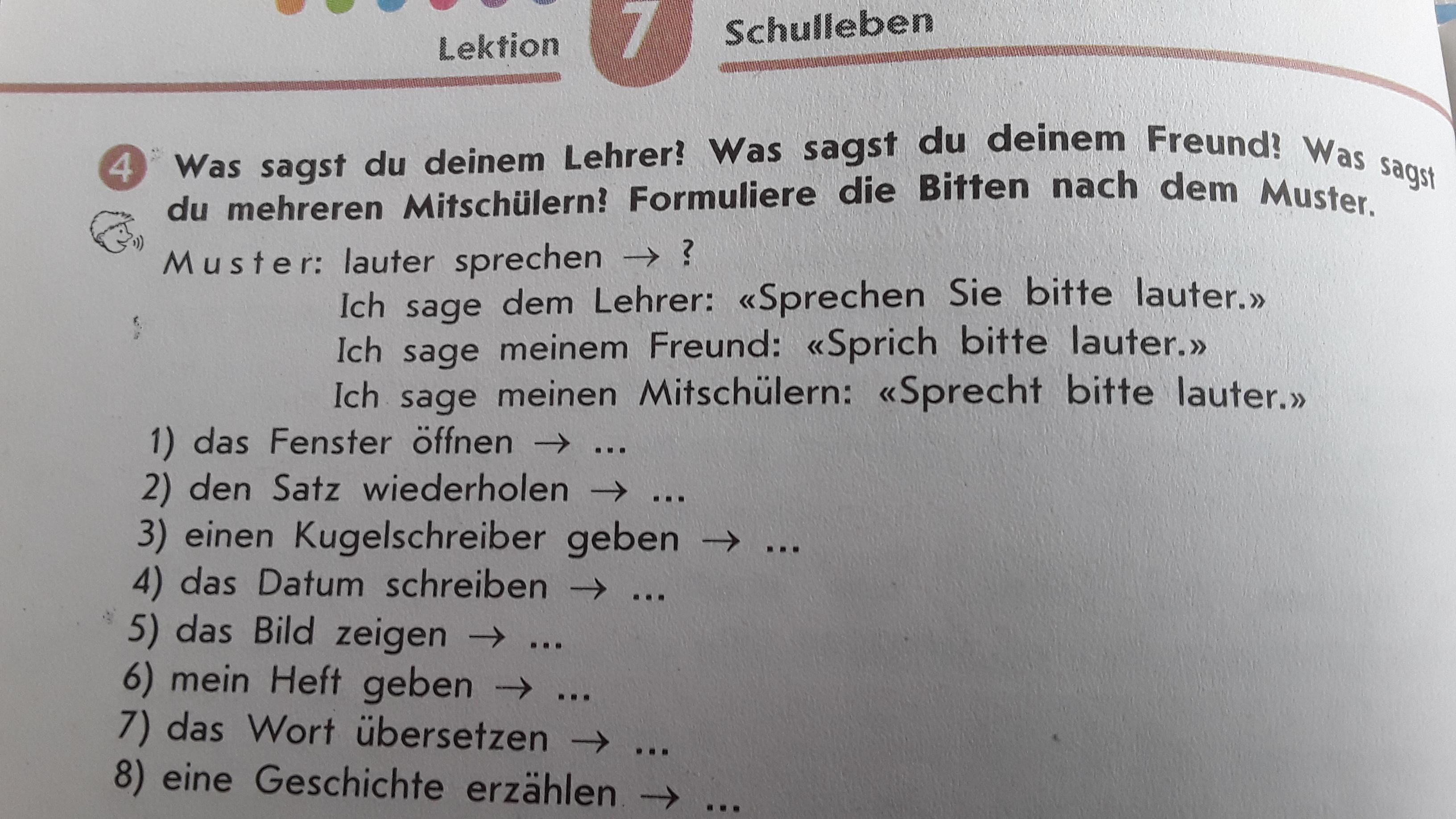 6) Dem Lehrer sage ich: "Könnten Sie mir bitte mein Heft geben?"