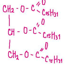 складіть скорочену структурну формулу жиру, у молекулі якого містяться залишки молекули гліцеролу й три залишки молекули пальмітинової кислоти