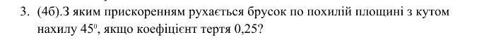 Таким чином, брусок буде рухатися з прискоренням близько 2,84 м/с по нахилій площині під кутом 45 градусів при коефіцієнті тертя 0,25.