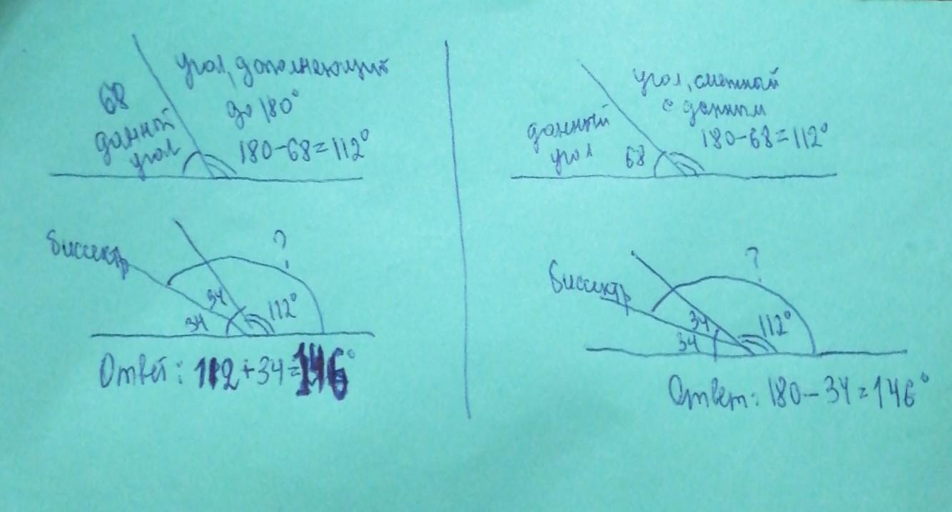 угол, образованный биссектрисой данного угла и смежным с ним углом равен: