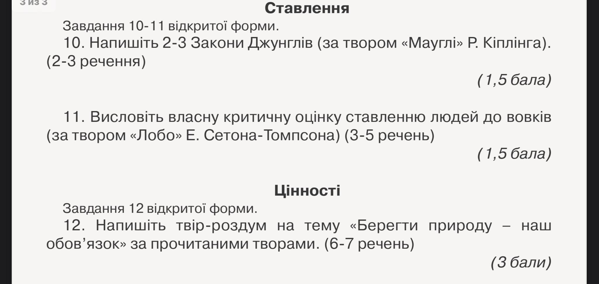 2)Мені не сподобалось поведінка людей,бо вони заставляю його страждати.Вбили його подругу.Вле він хижак.Його не змінити і він від природи такий.