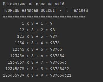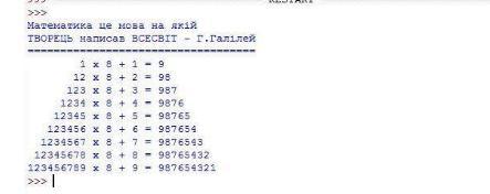 print("ТВОРЕЦЬ написав ВСЕСВІТ - Г. Галілей")