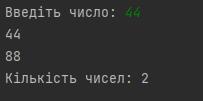 1. Написати програму виводу на екран всіх чисел кратних введеному і менших = 100 (цикл "while" з післяумовою). Програма також повинна порахувати кількість таких (кратних) чисел.