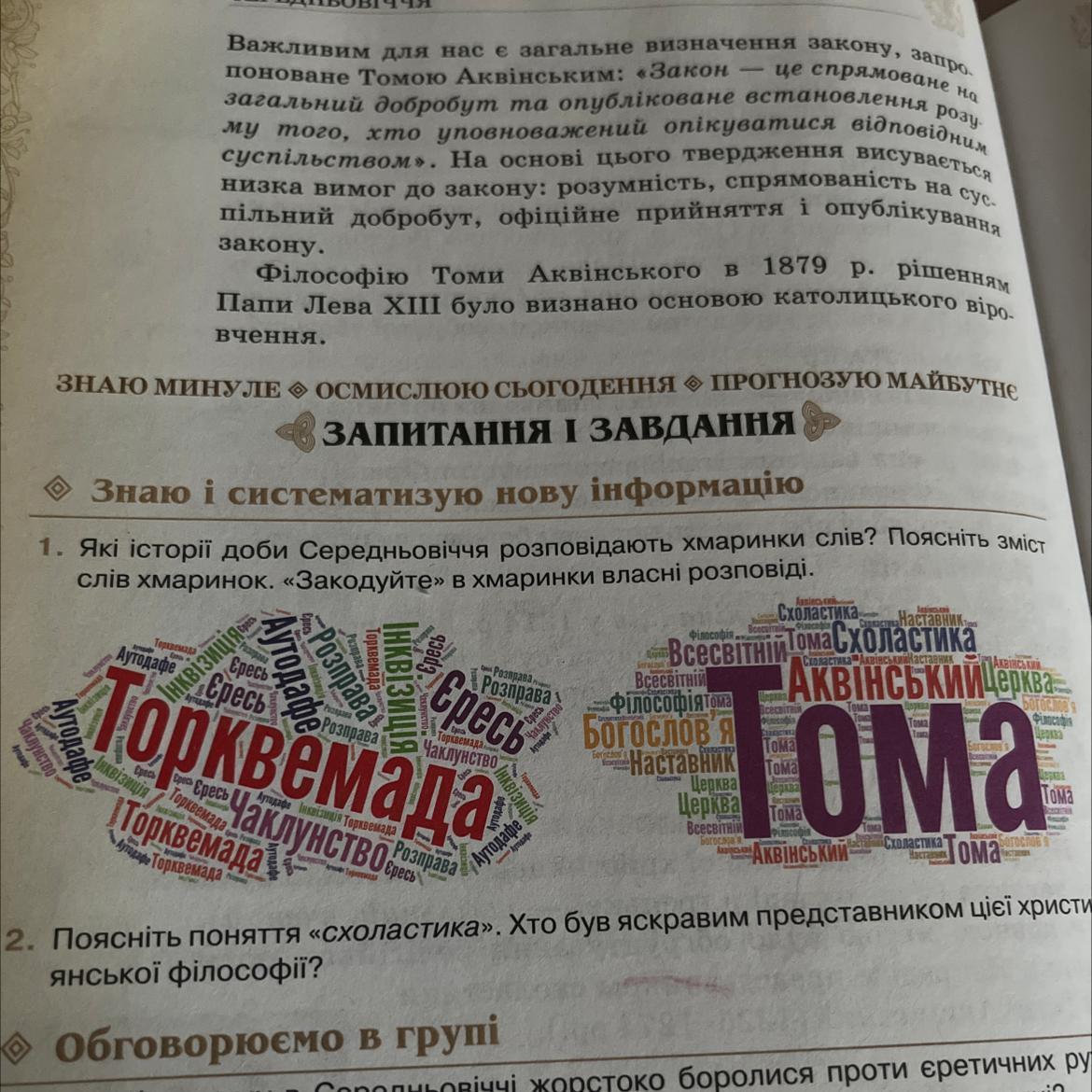 1. Які історії доби Середньовіччя розповідають хмаринки слів? Поясніть змiст