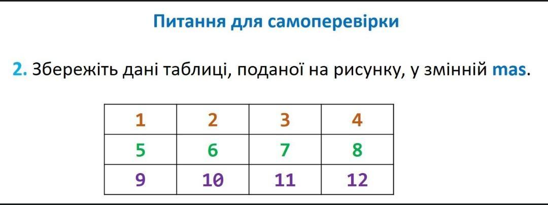 mas = [1, 2, 3, 4, 5, 6, 7, 8, 9, 10, 11, 12]