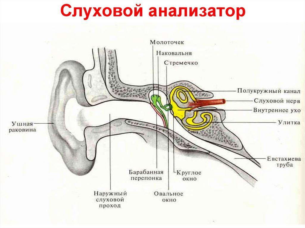 Улавливаемый ушной раковиной звук поступает в слуховой проход,оканчивающийся барабанной перепонкой -- границей между наружным и средним ухом. Под воздействием звуковой волны барабанная перепонка колеблется,вызывая последовательное движение трёх мельчайших косточек -- молоточка,наковальни и стремечка. Последняя из них,стремечко,через овальное окно передаёт колебания во внутреннее ухо,в частности на улитку. #SPJ1