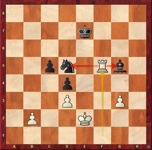 4. картинка : Белая ладья напала одновременно на две лёгкие фигуры чёрных