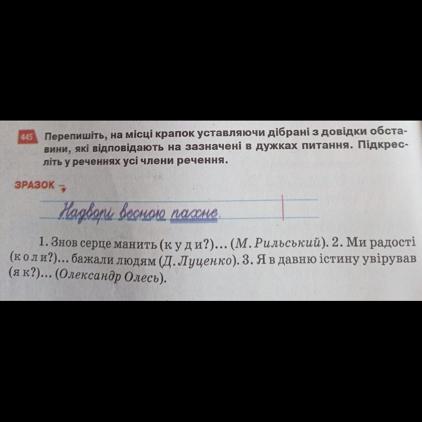 445 Перепишіть, на місці крапок уставляючи дібрані з довідки обста-