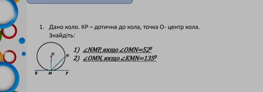 касательная к окружности перпендикулярна радиусу проведённому в точку касания , значит ∠ОМР=∠КМО=90°