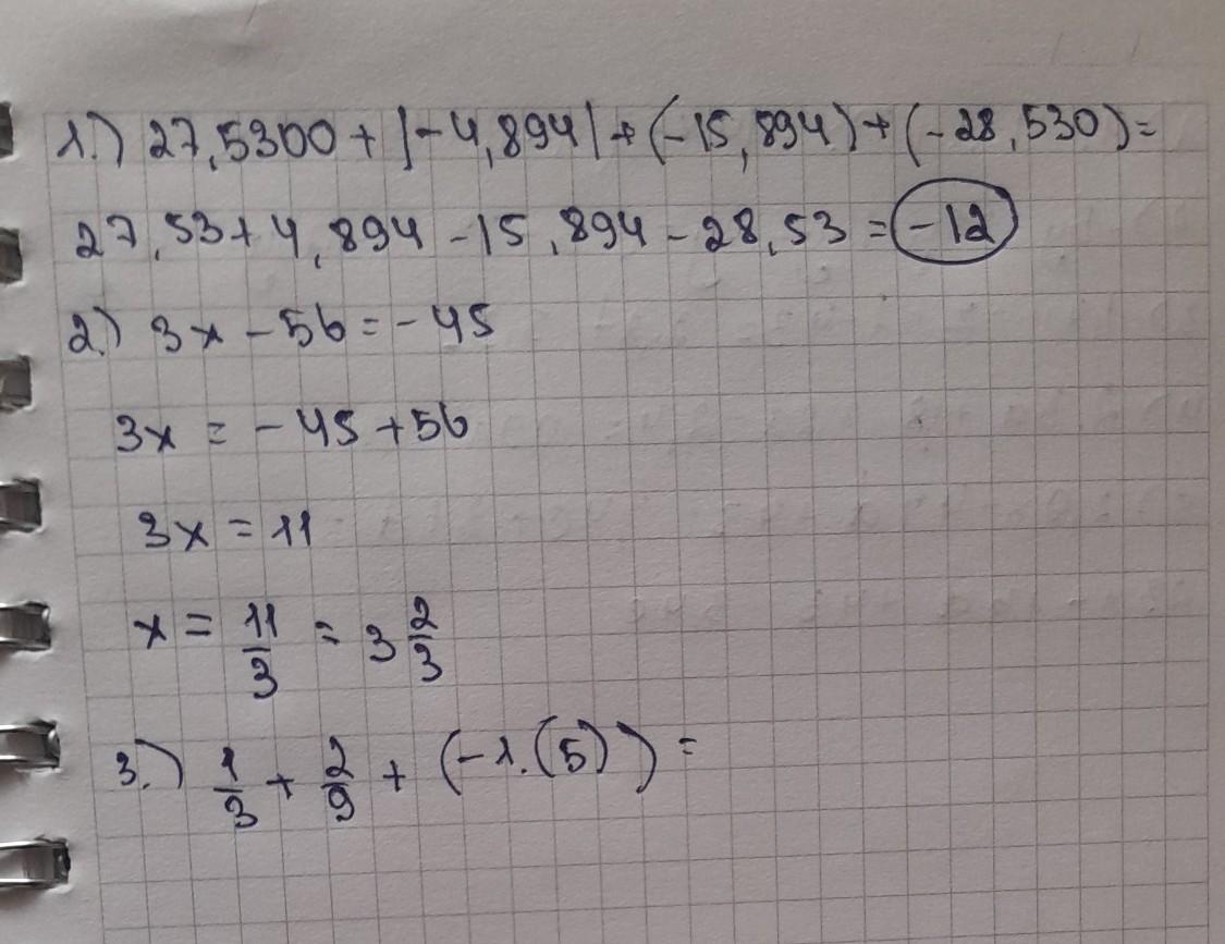 до суми чисел 1/3 і 2/9 додали число [ -1.(5) ]