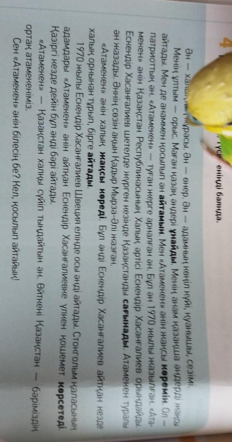 1. ұнамайды. 2. айтпаймын. 3. көрмеймін. 4. сағынбайды. 5. жақсы көрмейді. 6. айтпайды. 7. көрсетпейді.