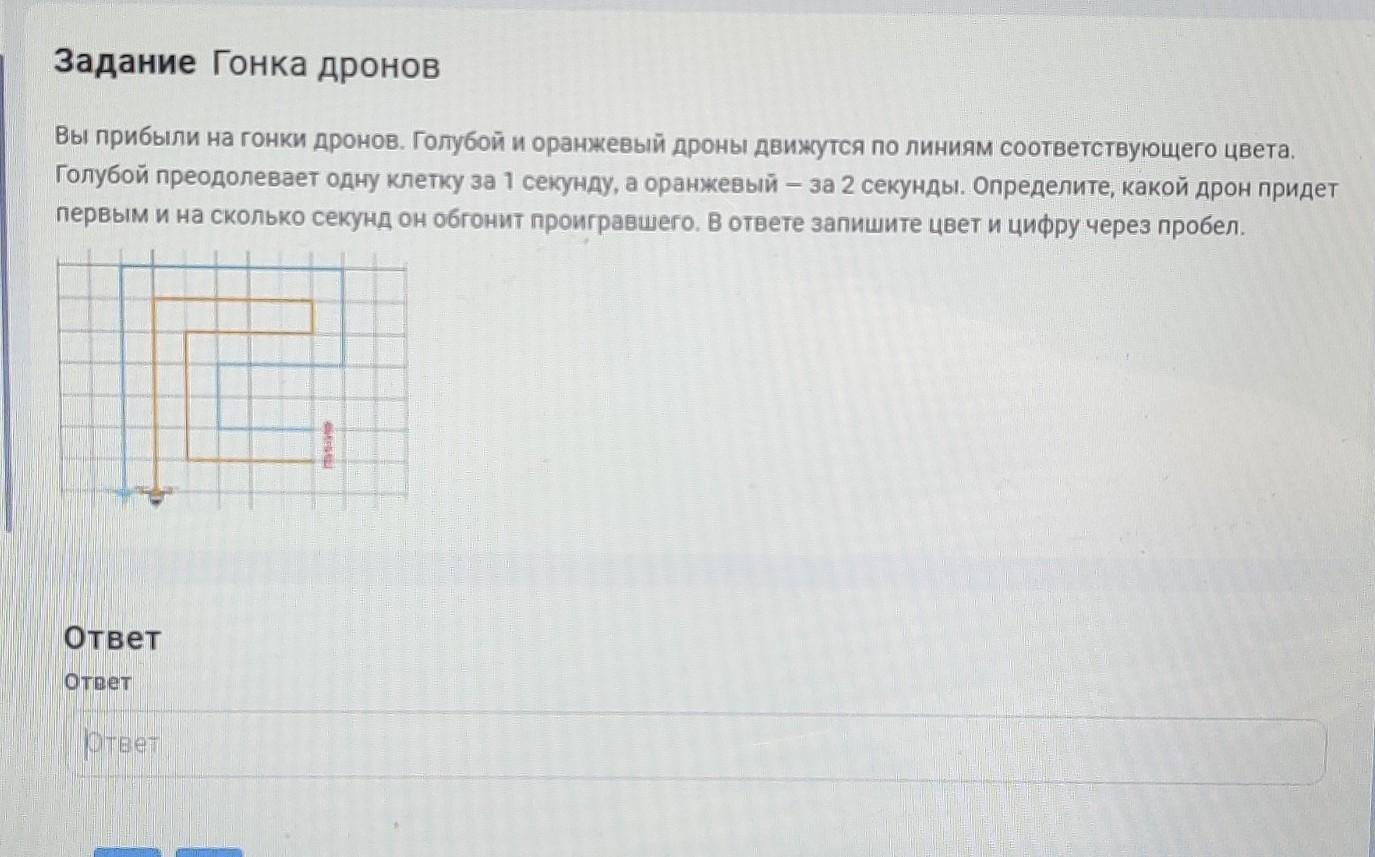 Ответ:быстрее прилетит оранжевый дрон