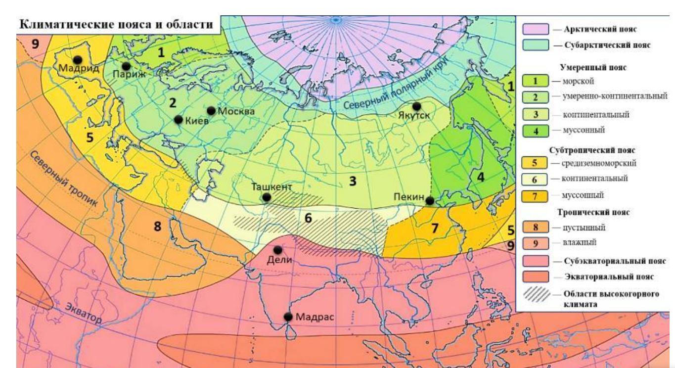 На сході материка Євразія переважає мусонний тип клімату, з холодною зимою і вологим і жарким літом.Опади випадають в основному в літній період.