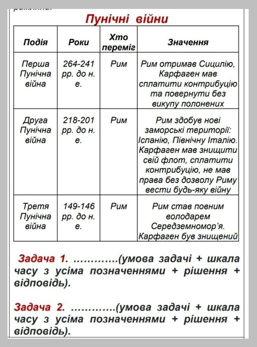 За допомогою таблиці «Пунічні війни» складіть дві задачі. Умови задач и таблиця на фото. Буду дуже вдячна за допомогу!