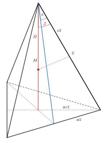 A - угол между боковой стороной и апофемой (альфа=2A)