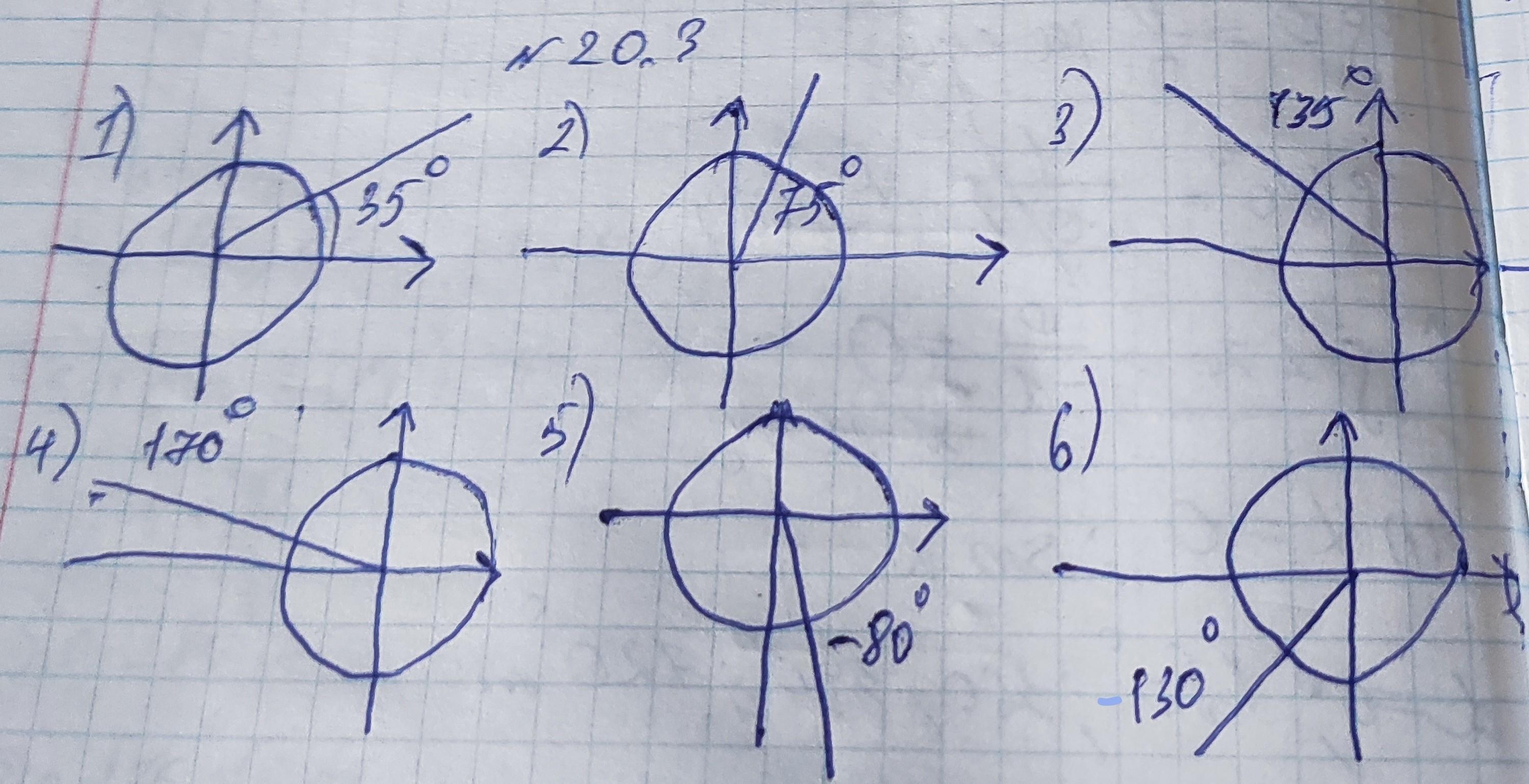 №20.3 Начертите единичную окружность с центром в начале координат,поверните начальный радиус на угол а ,где а равна: