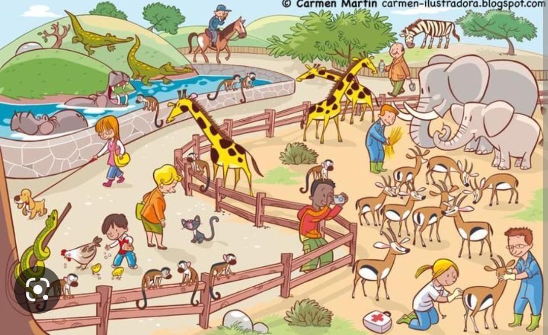 I believe that all children love going to zoo with their parents. In this picture we can several types of animals, such as wild animals. There are elephants, giraffes, alligators, hippopotamuses, monkeys,deers and others at the zoo. I think veterans check animals and workers feed them. Another people are walking around and enjoying to see cute animals.