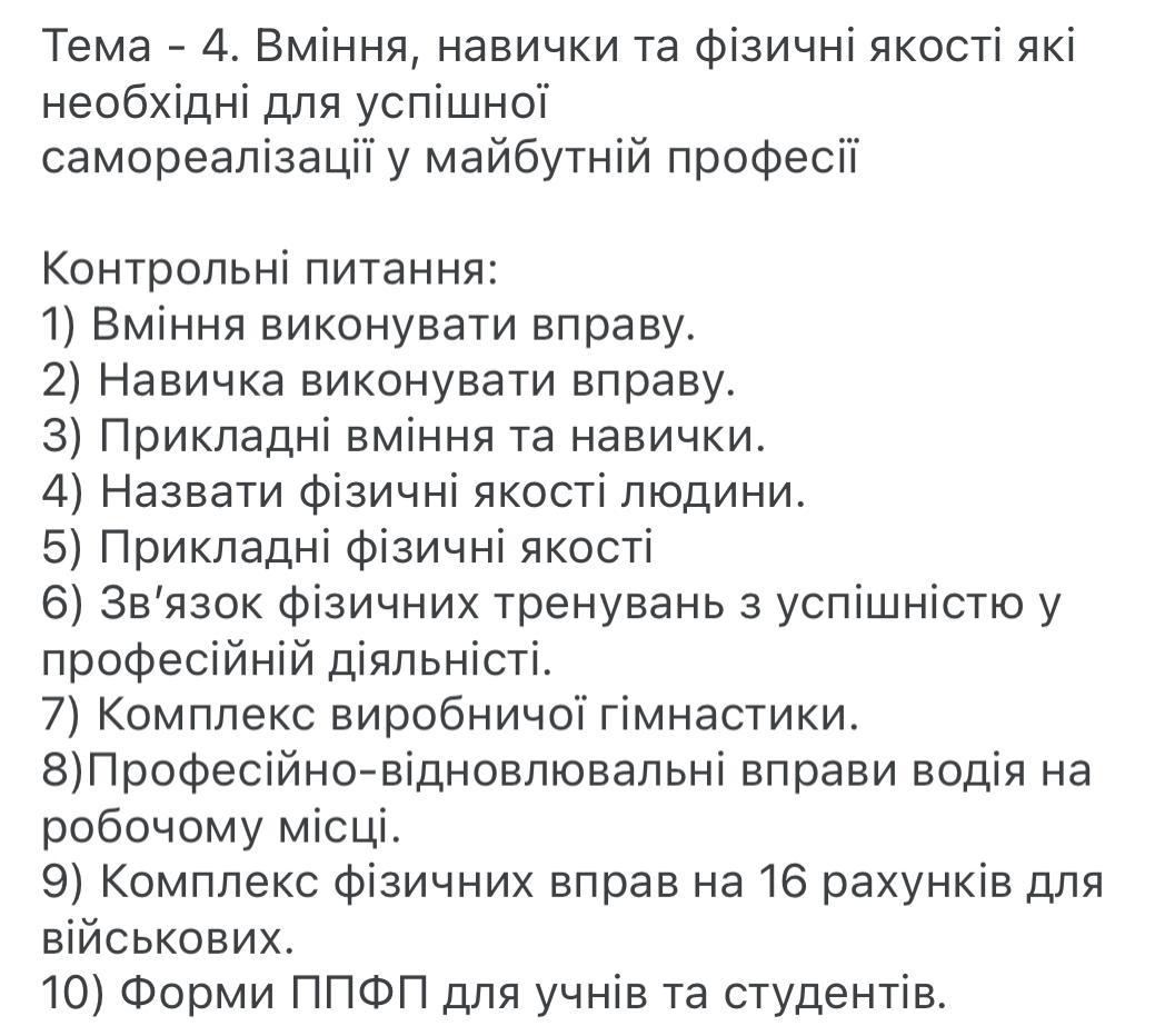5. Прикладні фізичні якості залежать від конкретної професії, наприклад, для спортсмена це можуть бути сила, витривалість, координація та швидкість, а для офісного працівника - гнучкість, хороша постава та витривалість.
