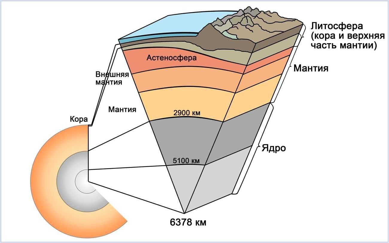 Литосфера - твёрдая оболочка Земли. Состоит из земной коры и верхней части мантии, до атмосферы, где скорости сейсмических волн понижаются, свидетельствуя об изменении пластичности пород. В строении литосферы выделяют подвижные области и относительно стабильные платформы.