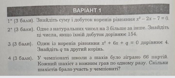 1. За формулою В'єта сума коренів рівняння x^2 - 2x - 70 = 0 дорівнює -(-2)/1 = 2.