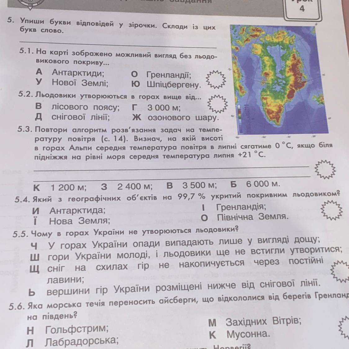 5.4. Який з географічних об'єктів на 99,7% укритий покрианны льодовиком