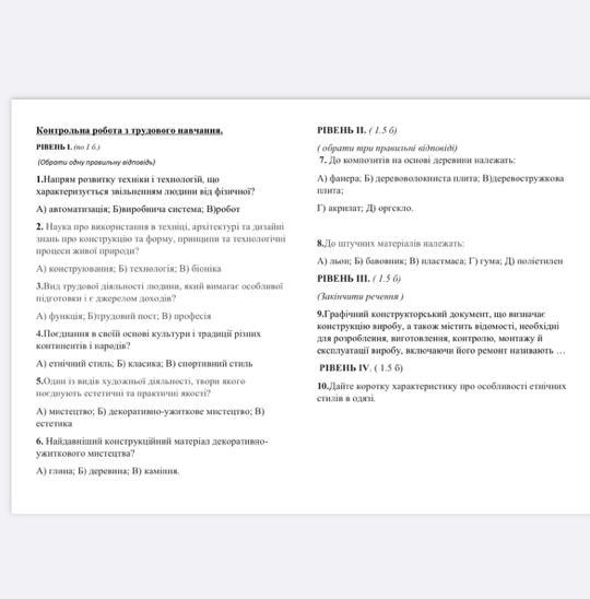 Контрольна робота з трудового навчання.