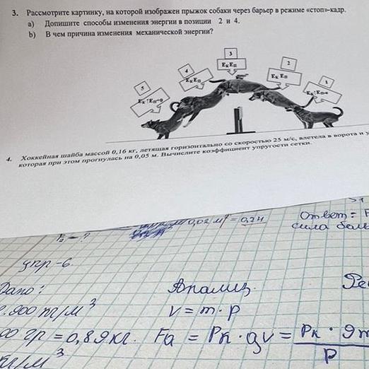 б) При выполнении прыжка собака изменяет свою механическую энергию, переводя ее из одной формы в другую. В начале прыжка (позиция 2) часть энергии тратится на преодоление силы тяжести, поэтому кинетическая энергия собаки невелика, а потенциальная энергия максимальна. В конце прыжка (позиция 4) кинетическая энергия собаки максимальна, так как она движется на максимальной скорости, а потенциальная энергия минимальна, так как собака находится на минимальной высоте над землей. Это происходит за счет силы тяжести и силы упругости мышц собаки, которые переводят потенциальную энергию в кинетическую.