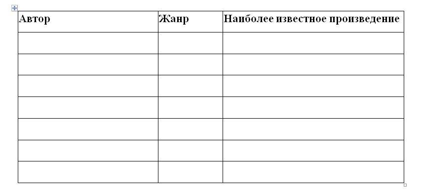 составить таблицу «Литература России XVIII века»