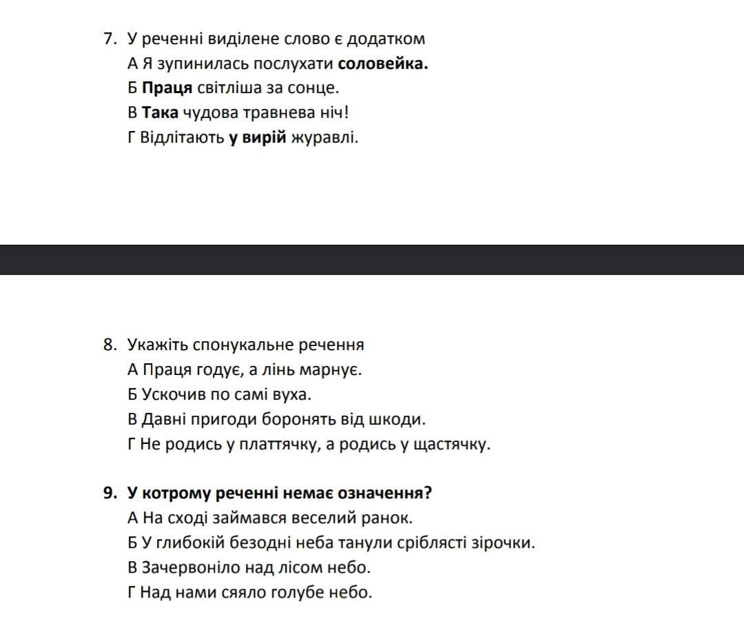 7) В реченні А ставимо питання від присудка: послухати кого? соловейка. Це є додаток, адже відповідає на питання непрямого відмінка (родового)