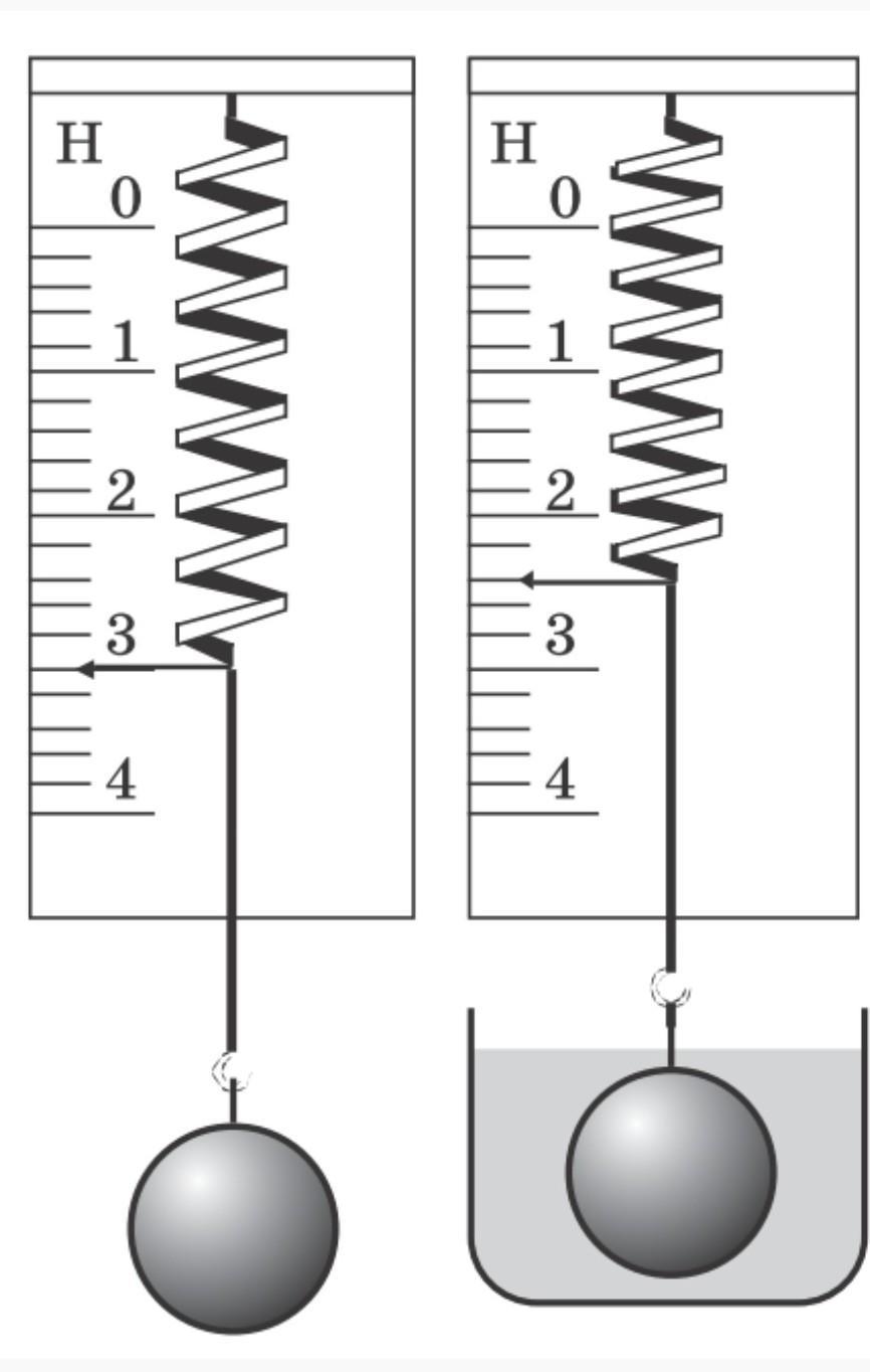 Кулю, яка підвішена до лабораторного динамометра, повністю занурено в рідину (див. рисунок). Чому дорівнює архімедова сила, що діє на кулю?