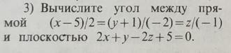 cos α = |n·v1| / (|n|·|v1|) = 12 / (3·3) = 4/3