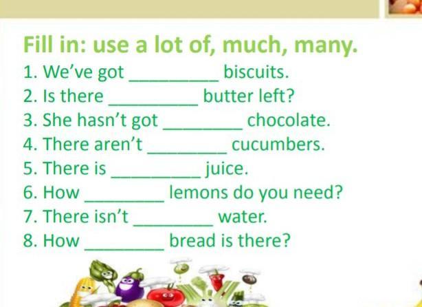 Much - это то что мы НЕ можем посчитать, например: рис, вода, лимонад и тд.