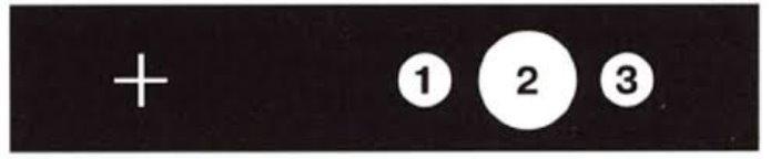 Помістіть малюнок перед очима на відстані витягнутої руки, закрийте ліве око. Дивлячись правим оком тільки на хрестик, зображений на картці, повільно наближайте її до себе. На певній відстані від обличчя частина малюнка випаде з поля зору.