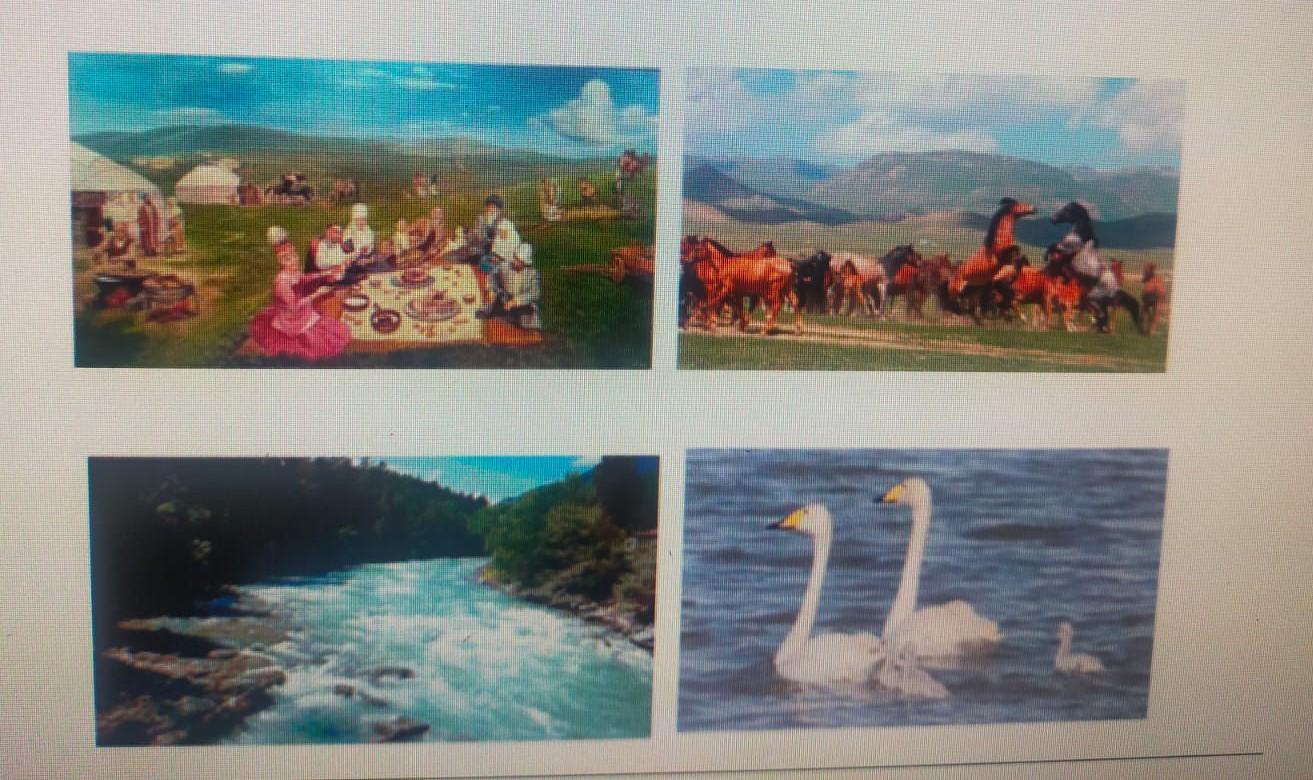 3. Се у р т т е р бойынша «Жаз мезгіліндегі жайлаудағы демалыс» такырыбында әңгіме құрастырыңыз. Тірек сөздер: жайлауға кешу, киіз үй тігу, өзенге шомылу, аккулар, мол дастаркан, самаурын кайнату, әңгіме-дүкен құру, қой бағу, атқа міну I