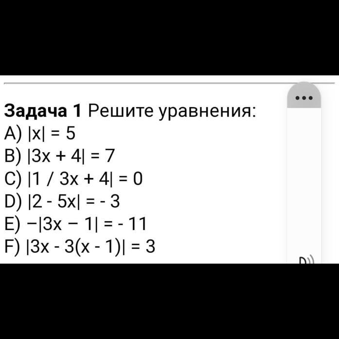 D) Уравнение |2-5x|=-3 не имеет решений, так как модуль числа всегда неотрицательный, а правая часть равенства отрицательная.