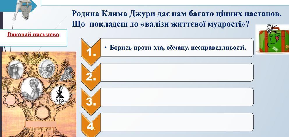 2)Ніколи нічого не бійся 3)Завжди підтримуй рідних 4)Навіть якщо тобі страшно ніколи не відступай