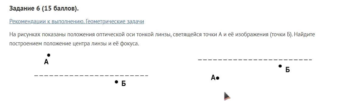 На малюнках Показані положення оптичної осі тонкої лінзи, що світиться точки А і її зображення (точки Б). Знайдіть побудовою положення центру лінзи і її фокуса.