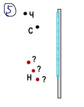 Недалеко від дзеркальної вітрини (на малюнку показаний вид зверху) стоїть людина (на малюнку позначений точкою Ч), а ближче до вітрини знаходиться ліхтарний стовп (точка з). Побудовою знайдіть положення, при яких спостерігач буде в вітрині бачити: людини зліва від стовпа; людини праворуч від стовпа; стовп, загороджує людини. (На малюнку точки H вказані для прикладу і не є відповіддю).
