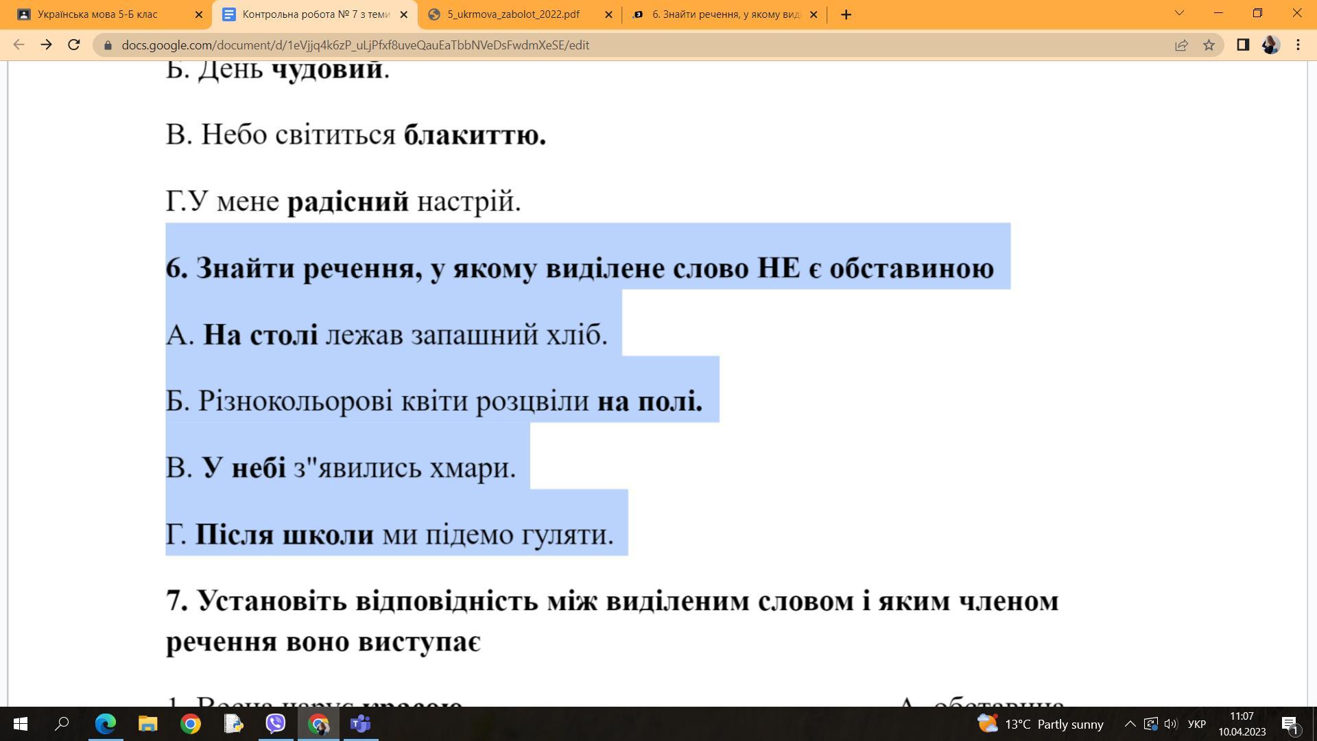 6. Знайти речення, у якому виділене слово НЕ є обставиною
