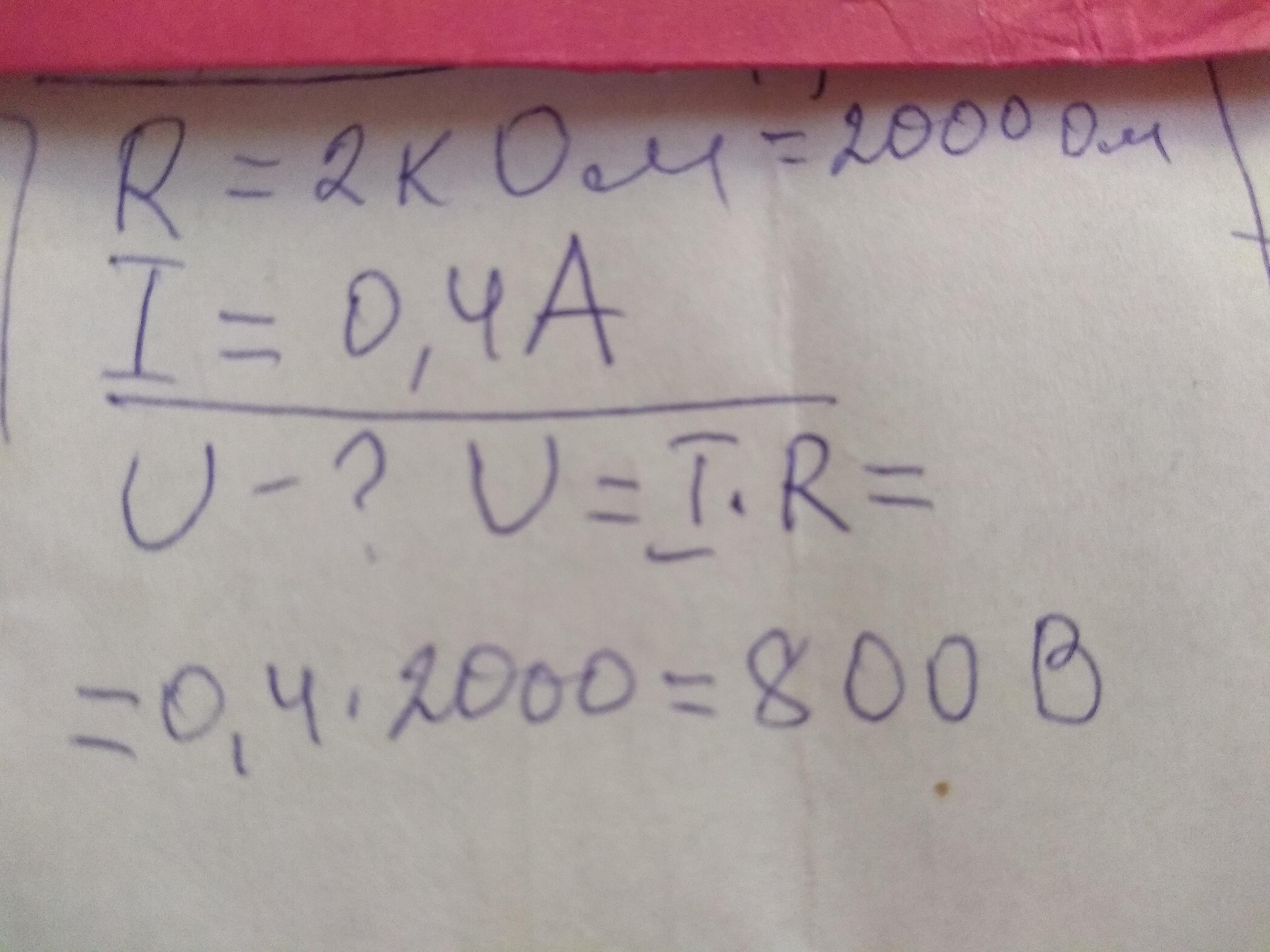 СРОЧНО. ДАЮ 100 БАЛОВ. Визначте напругу на ділянці електричного кола, якщо опір ділянки становить 2 кОм, а сила струму в ньому дорівнює 0,4 А.